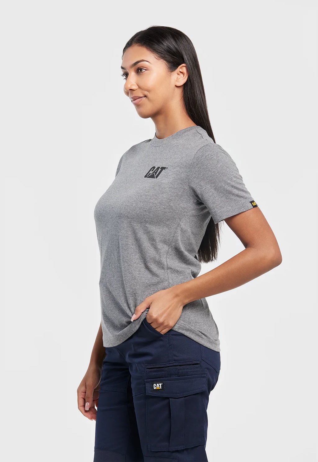 Designed for comfort, durability, and everyday versatility, the CAT Women’s Trademark Tee brings CAT’s iconic style in a fit made specifically for women. Crafted from premium weight cotton jersey, this tee offers a soft, durable feel suitable for work or casual wear.