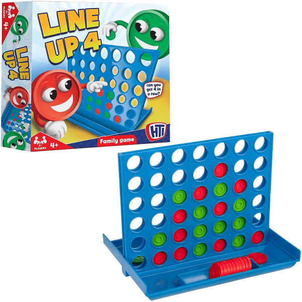 Case and playing counters in bright primary colours. Take it in turns to place your coin in the slot.