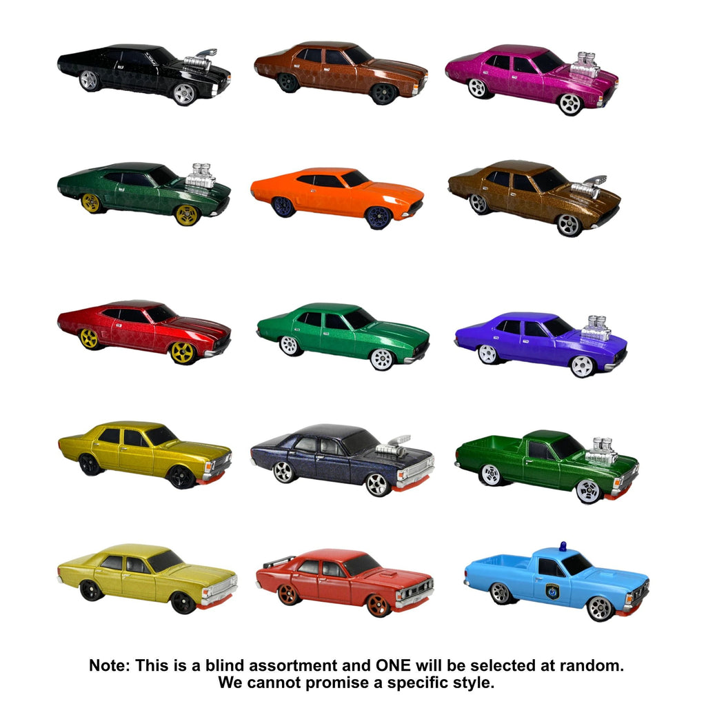Die cast collectable Australian classic cars, Scale: 1:64. Each model in the RedBellies range features: Diecast metal bodies for durability and a premium feel. Plastic chassis and wheels for affordability while maintaining classic proportions. Accurate Aussie muscle car designs, from legendary race machines to street beasts. 1 picked at random.